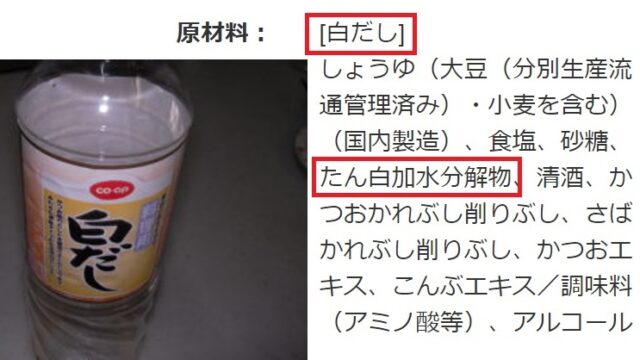 【たんぱく加水分解物の危険性】ほとんどの白だし、菓子、かまぼこ類などに使用