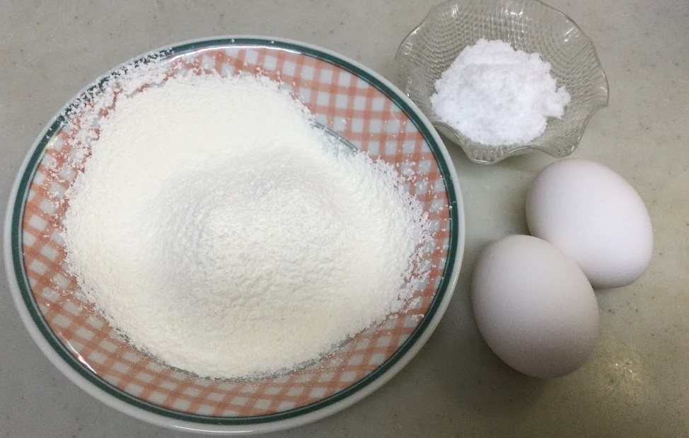 小麦粉+卵+砂糖=80円
