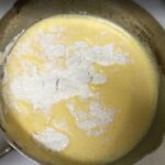 ③ふるっておいた小麦粉を3回ほどに分けて混ぜ込みます。
