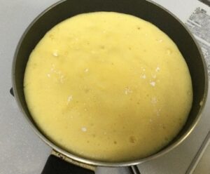④生地を油を敷いたフライパンに流し込みます。