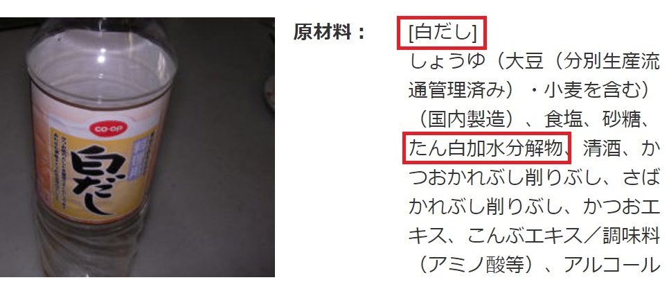 【たんぱく加水分解物の危険性】ほとんどの白だし、菓子、かまぼこ類などに使用